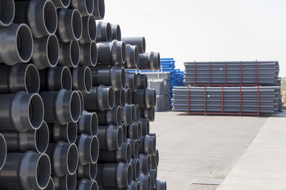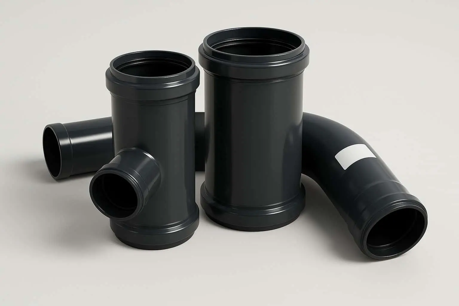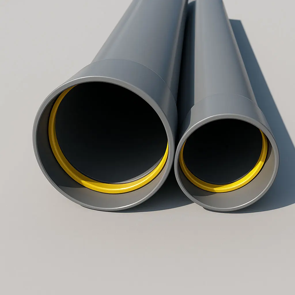 PLAFONDPRESS, tubi compatti in PVC dotati di connessione Maschio – Femmina con bicchiere completo di guarnizione elastometrica o con bicchiere incollaggio di colore Grigio Scuro, RAL 7011 per il trasporto di liquidi in pressione.